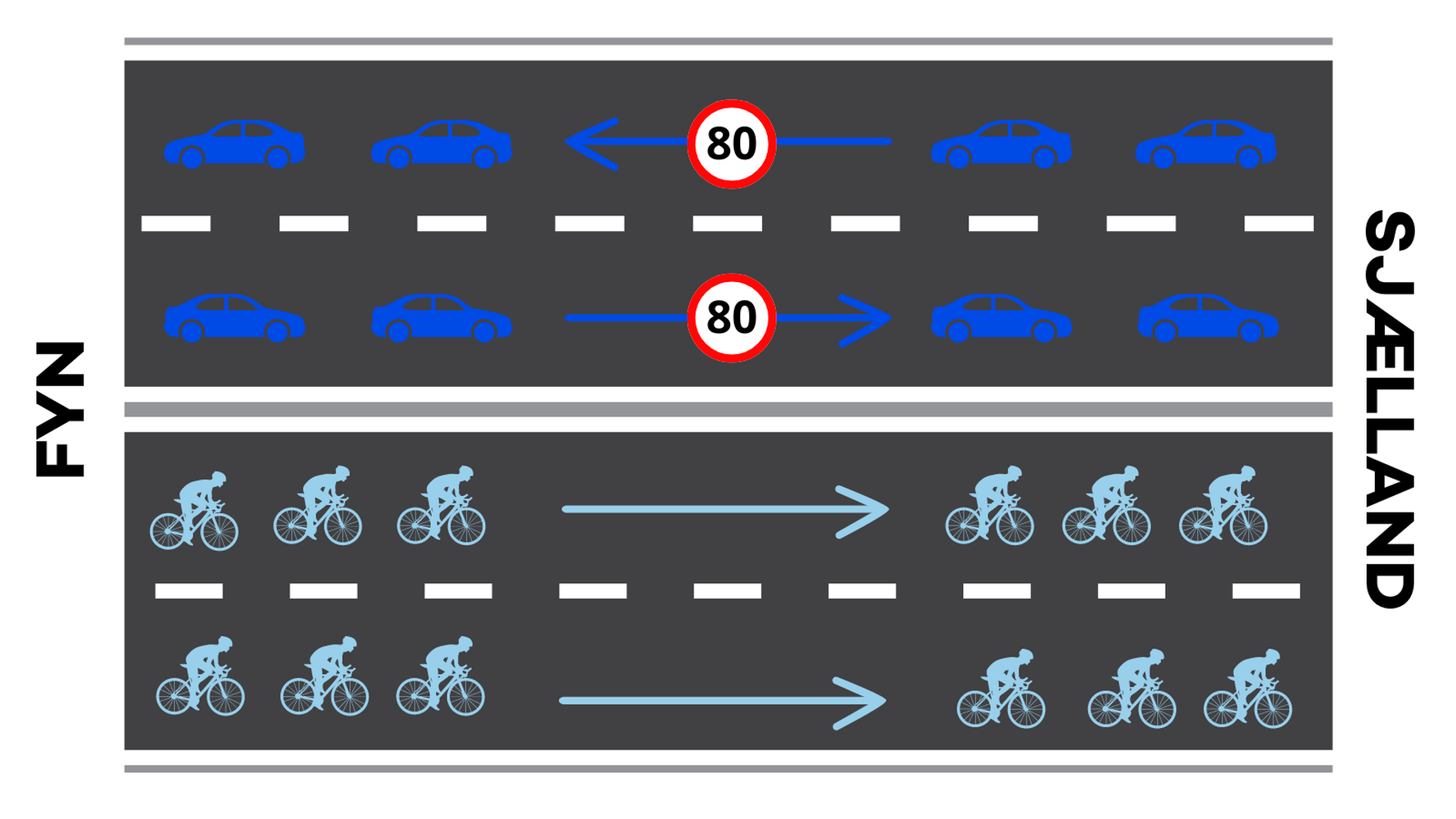 Under løbet vil der være dobbeltrettet trafik i de vestgående spor i retning mod Fyn og Jylland, og vejens status ændres til landevej med en hastighedsbegrænsning på 80 km/t og overhaling er forbudt.
