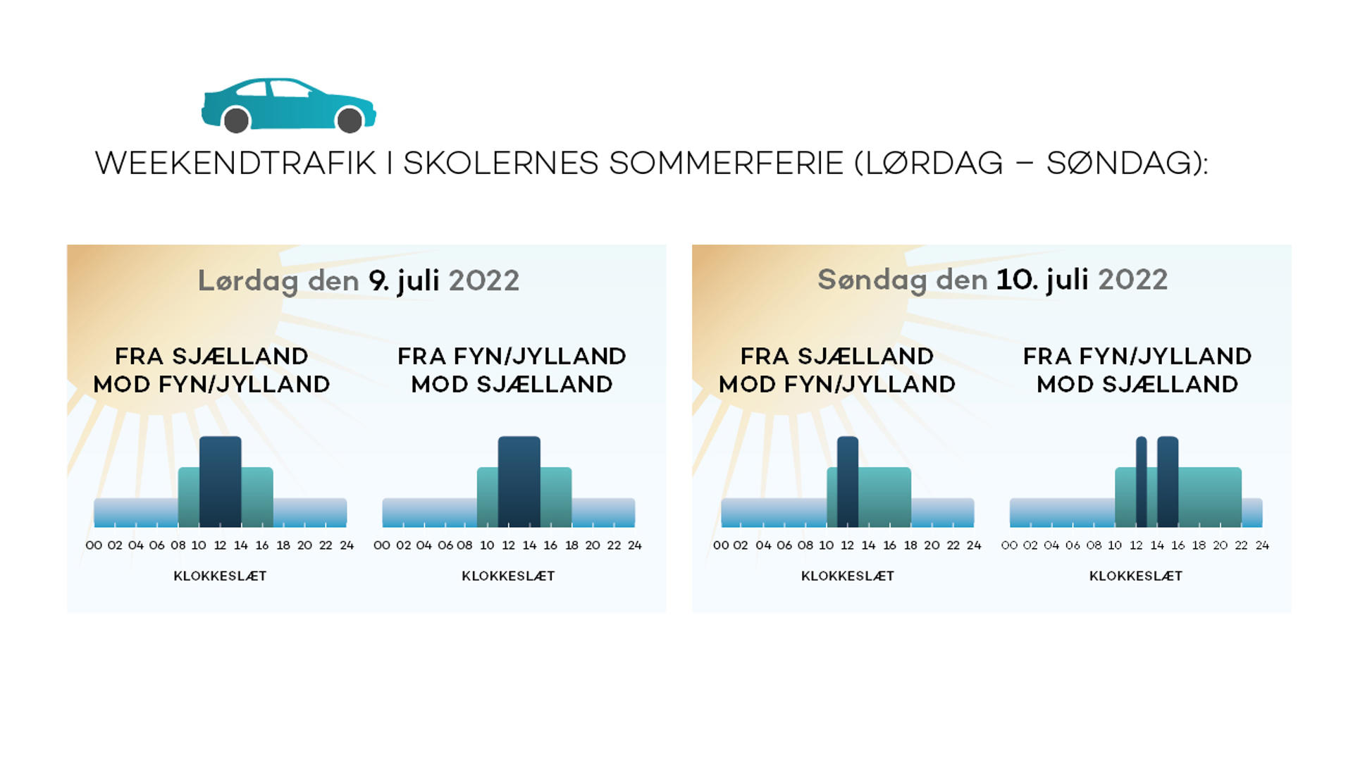 Det betyder ekstra trafik over Storebæltsbroen, hvor weekenderne generelt bliver travle. Her har vi samlet sommerens trafiktal i en række grafikker til dig.