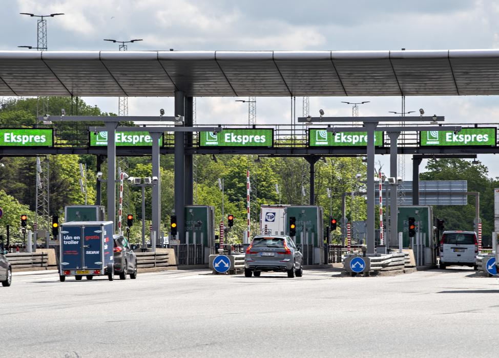 The signs at the Storebælt Bridge toll booths have different colours to make it easy to see which lane to use.