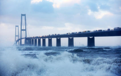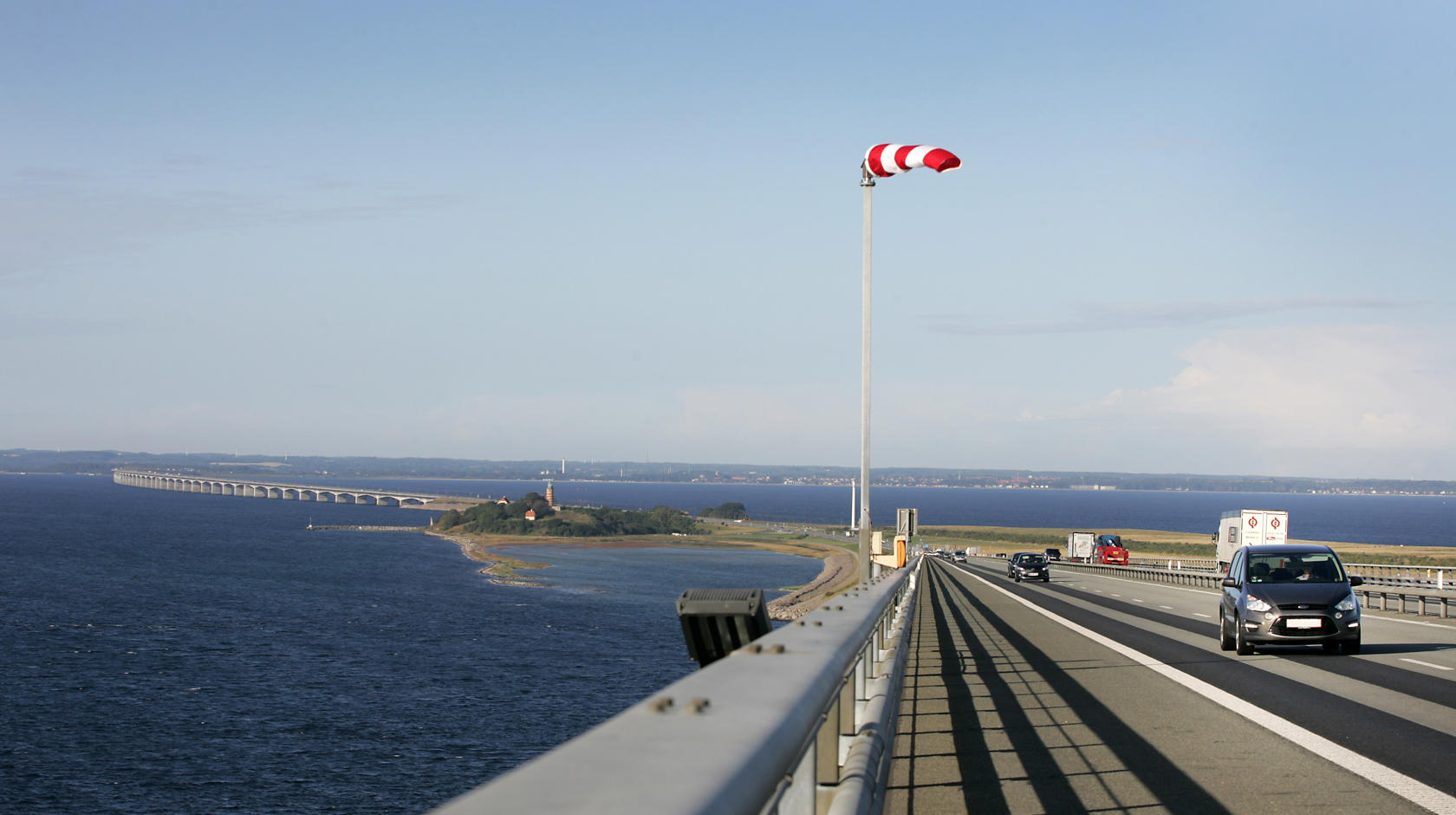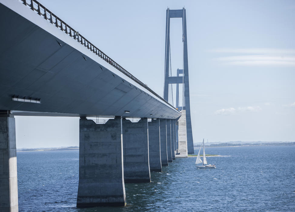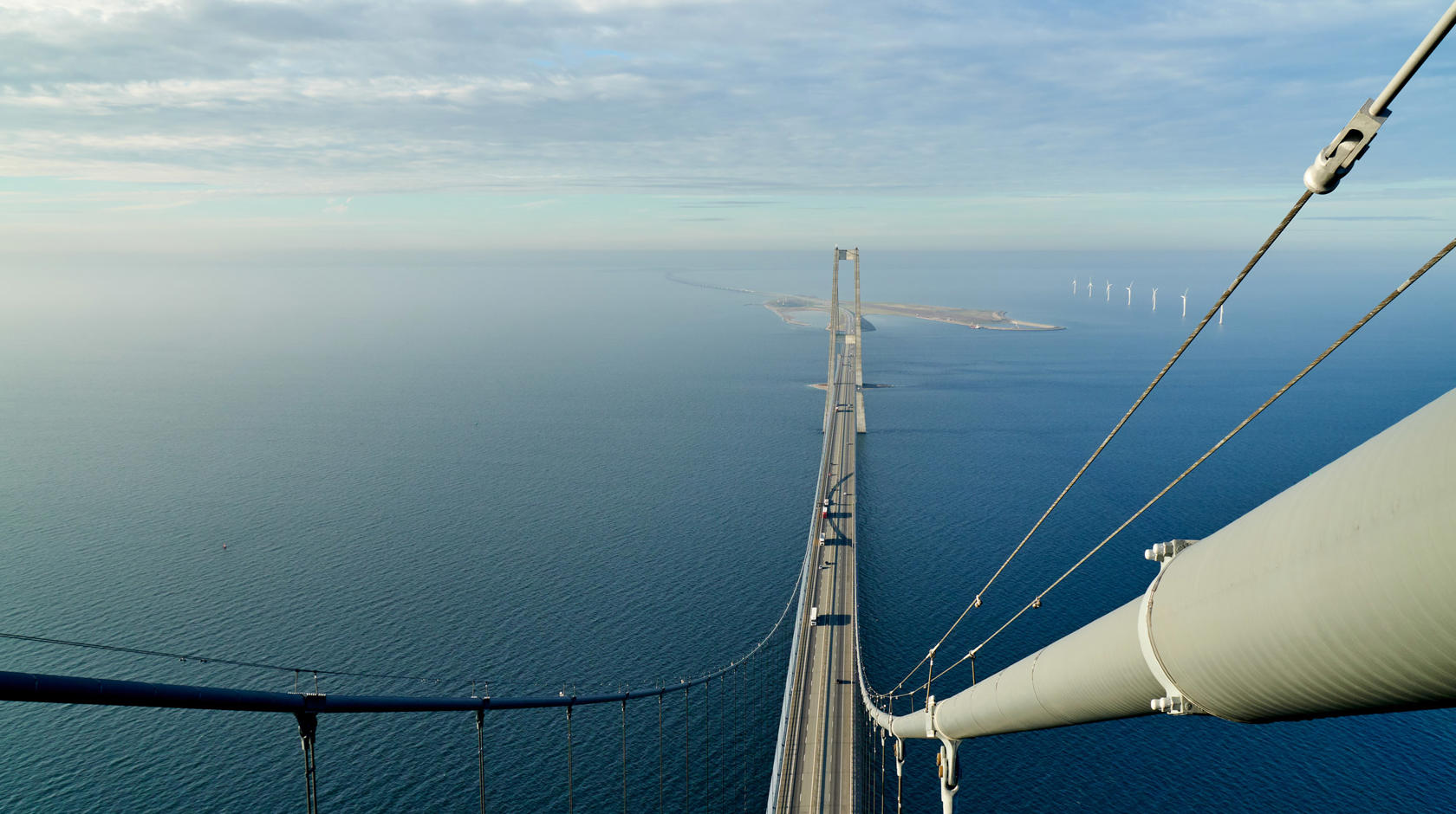 Watch live from the top of the eastern pylon of the Storebælt Bridge.